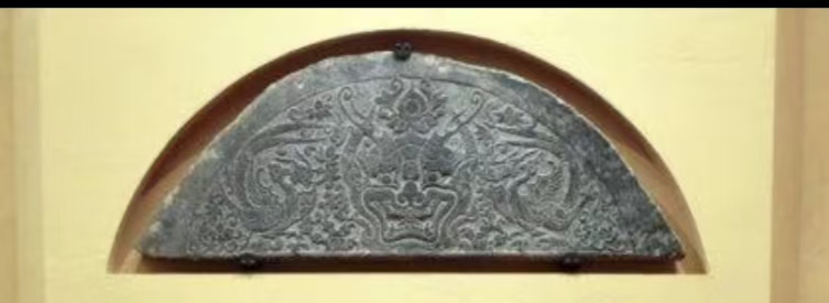 石墓门则深埋于地下幽冥世界,护佑着逝者灵魂的安宁。一般完整的石墓门由门额、门楣、门框、门扉、门限、门砧等部分构成。而宾博馆藏的墓门由上部的门额与下部的两扇门扉组成,周围包以木框,门高约1.73米,有可能缺少了一些石构件。门额为拱形,雕刻者以减地平雕加阴线刻的手法,雕刻出精细的动植物形象。门额中央为一周饰火焰纹的宝珠,其上升起两枝莲花。宝珠两侧各饰一凤凰纹,凤凰昂首挺胸,展翅欲飞。凤凰后部各饰一五瓣花朵。