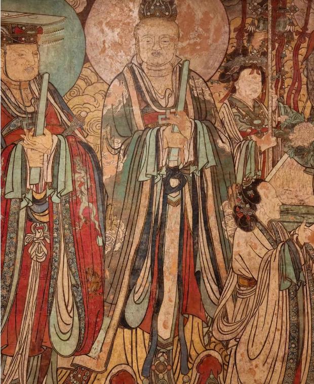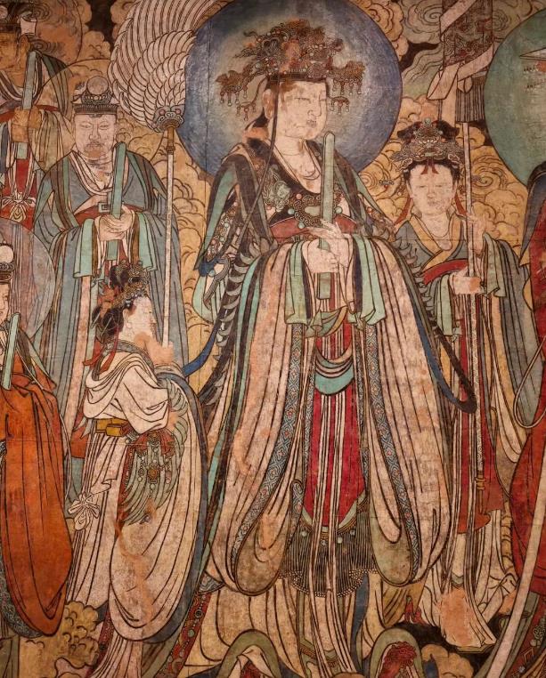 元代继承并重构道教神系,壁画主题体现全真教与皇权结合的时代特征,例如北极大帝、玉皇大帝等主神形象突出。