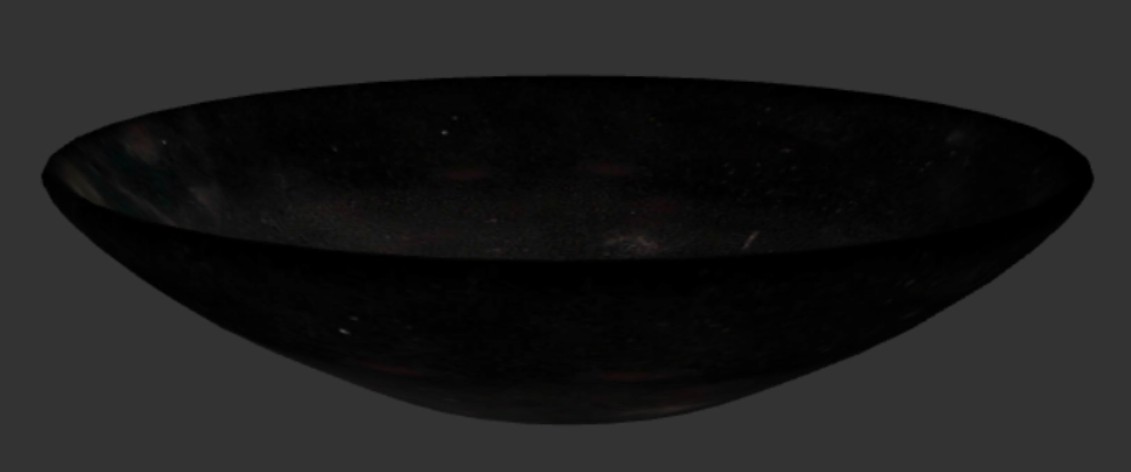 器身呈敞口造型,口沿外撇,腹部自上而下渐收,底承圈足,胎质呈灰白色,质地坚密细腻,胎体厚度均匀 ,通体施黑釉,釉色漆黑如墨,釉面光泽温润 ,釉层表面布满大小不等的银灰色金属光泽结晶斑,斑纹呈油滴状均匀分布,在光照下显现"映日透视,光彩夺目"的视觉效果。