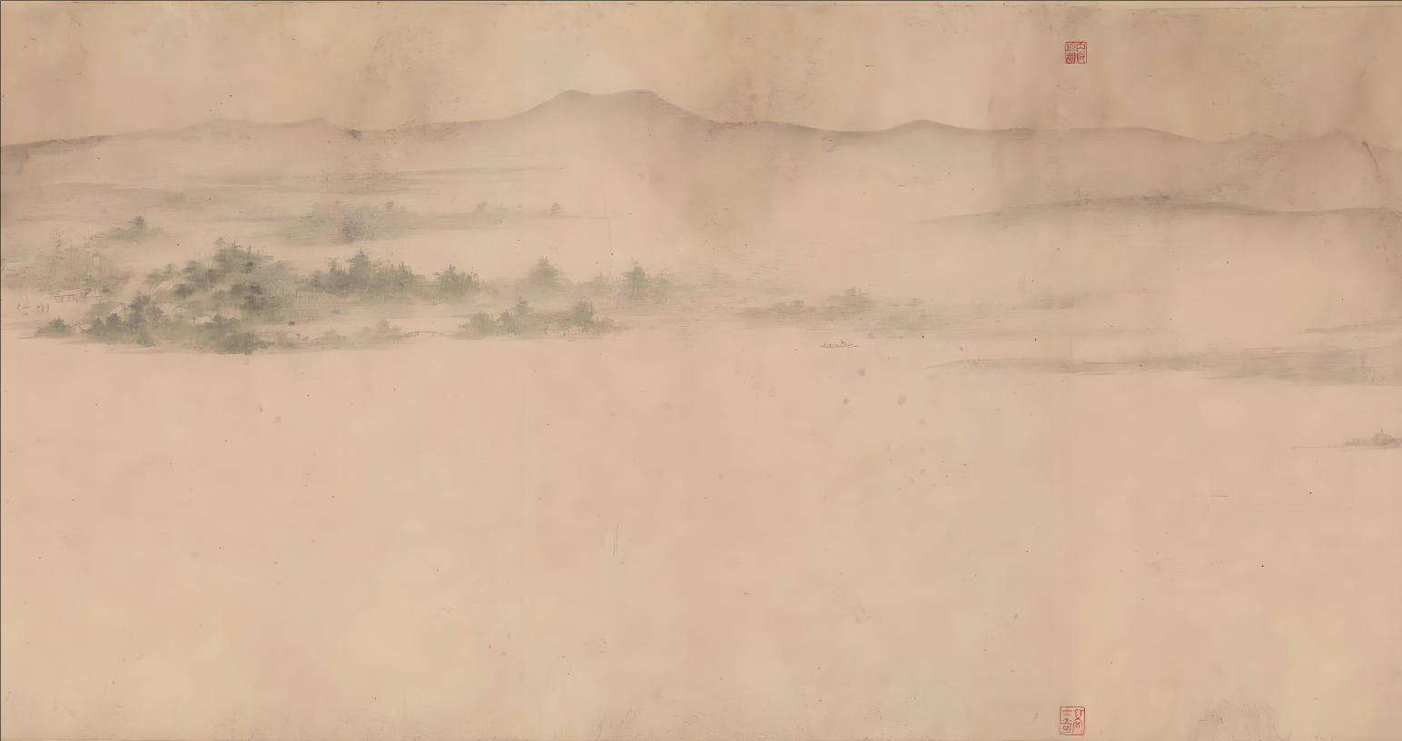 1923年,东京大地震,菊池惺堂于火中抢救出《潇湘卧游图》,于是画卷上留有一点火痕。