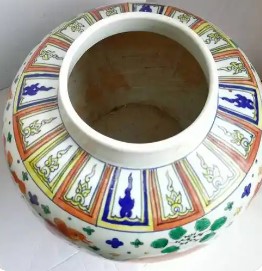 明嘉靖五彩鱼藻纹罐
