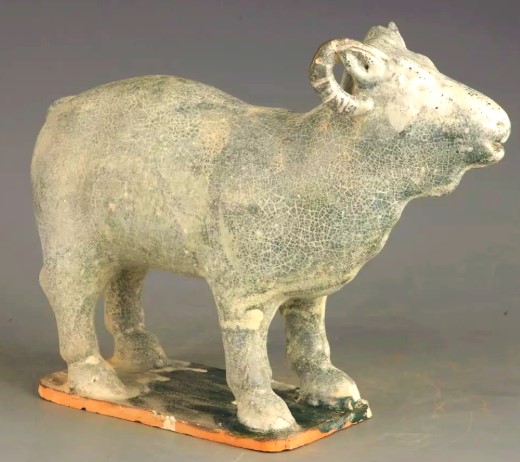 东汉厚葬之风盛行,绿釉陶羊群象征“吉祥富足”,体现“事死如事生”观念。羊在汉代属贵重资产,《九章算术》载“一羊胜两猪”,此类明器彰显墓主财富。