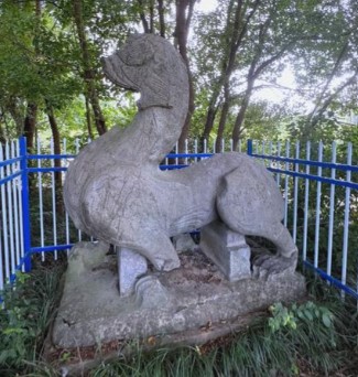 丹阳南朝陵墓区的齐明帝萧鸾兴安陵(东昏侯之父)石刻中,神道石兽为典型的南朝风格: