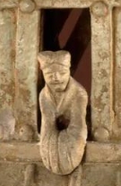 底层:门内端坐一陶俑(可能象征庄园主或管理者)。