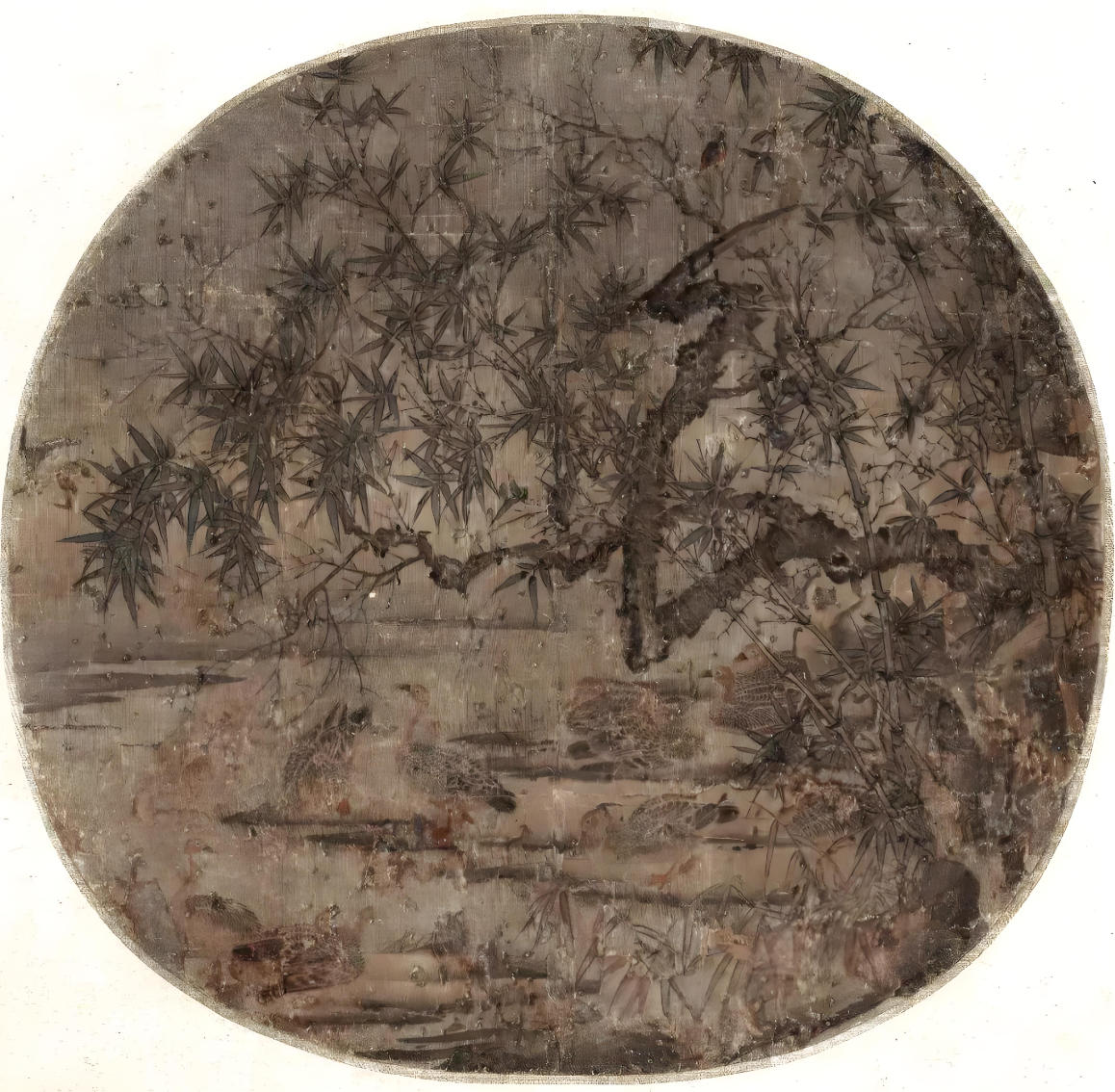 郊外田野、流淌的小河、参差的河岸、群栖的小鸟等,描绘此类浅显景色的画被称为“小景画”。传统上,将中国五代时期的画家惠崇尊为小景画的始祖,此类画为北宋时代末宗室画家们所好,其后的画家们也对这种特殊的画态颇感兴趣。小景画的遗作不多,年代久远的作品更加稀少,而《竹塘宿雁图》就是其中难得的遗作之一
