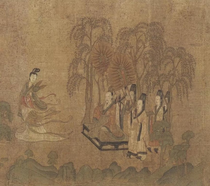《洛神赋图》是东晋顾恺之的画作,原《洛神赋图》卷为设色绢本。是由多个故事情节组成的类似连环画而又融会贯通的长卷,现已失。现主要传世的是宋代的四件摹本,分别收藏在北京故宫博物院(二件)、辽宁省博物馆和美国弗利尔美术馆。故宫博物院的两件人物形象基本相似,只不过景物有一繁一简之分。