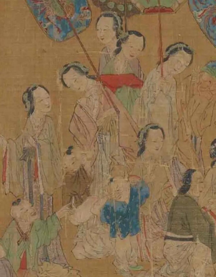 【 明 仇英 《揭钵图》 】卷,绢本设色,27.4×424cm,美国弗利尔美术馆藏