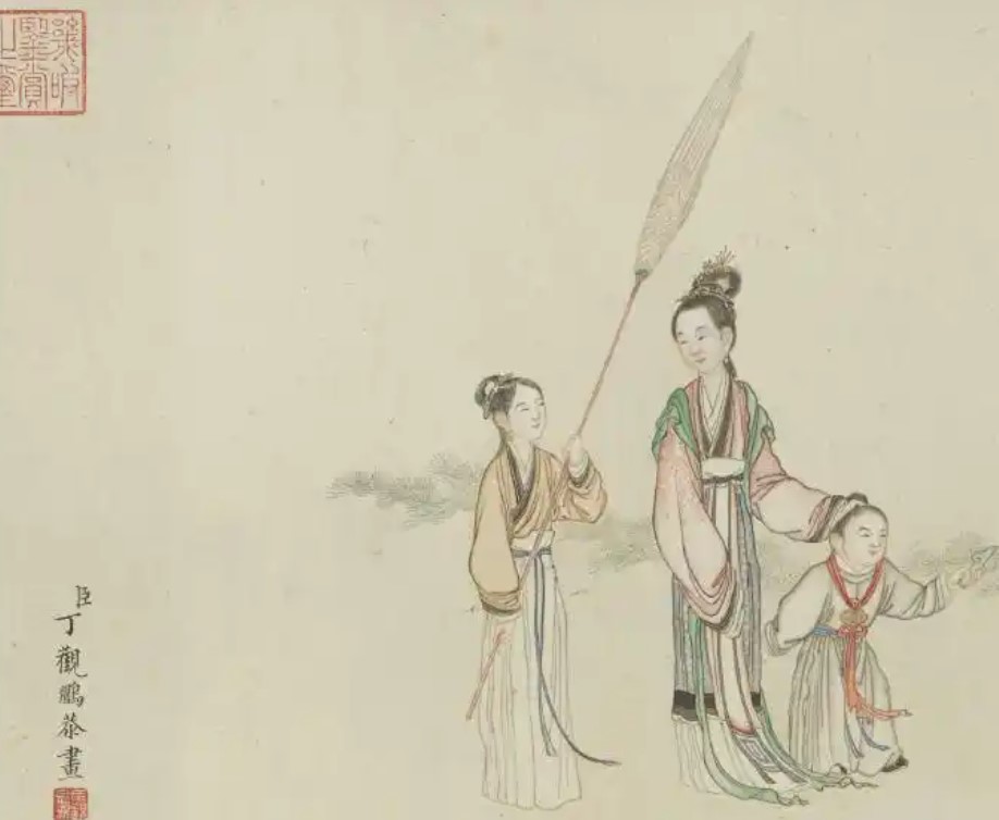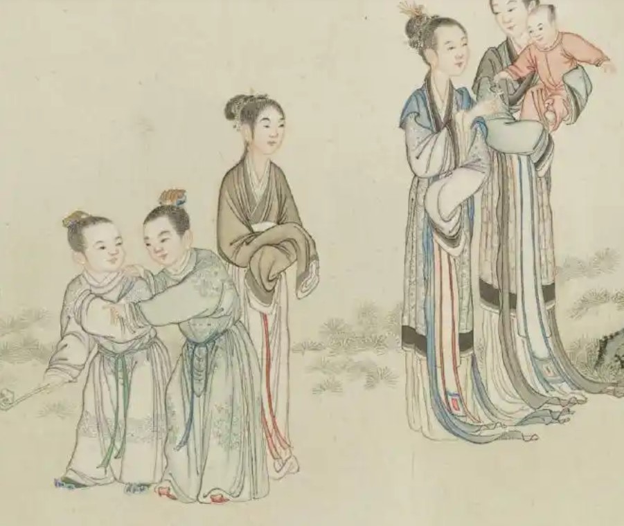 清代丁观鹏《仕女戏婴图》(又称《宫女婴戏图》)是清代宫廷婴戏题材的典范,既展现丁观鹏融汇中西的技法革新,也折射18世纪社会文化心理。弗利尔美术馆的收藏为海外研究中国风俗画提供了关键实物