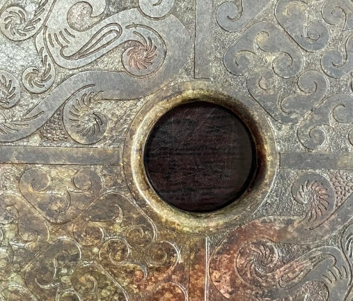 玉璧,作为古代六瑞之一,在中国历史上占据着举足轻重的地位。六瑞这个称呼,最早出现在战国末期撰写的《周礼》一书中,将璧、琮、圭、璋、琥、璜六种玉制器物统称为六瑞。这件龙纹璧的表里两面都内外划分,内侧由螺旋纹表示,外侧则雕刻有龙和凤凰的造型。