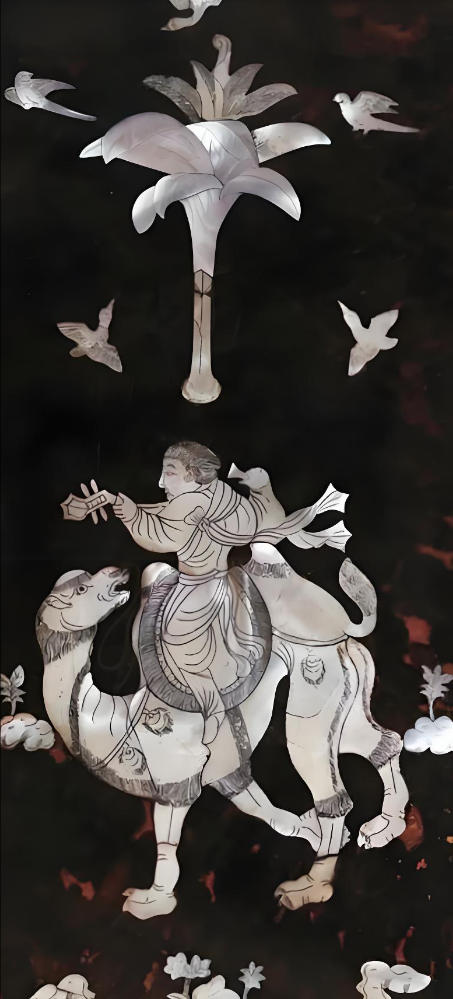 螺钿紫檀五弦琵琶是唐朝的一种镶嵌质地乐器。此种五弦琵琶现已失传,但在敦煌壁画上经常可以看到飞天弹奏此种乐器。在这一件存世的五弦琵琶上,唐代的螺钿镶嵌技巧在此琵琶上发挥到了极致,表现了大唐盛世的繁华。
