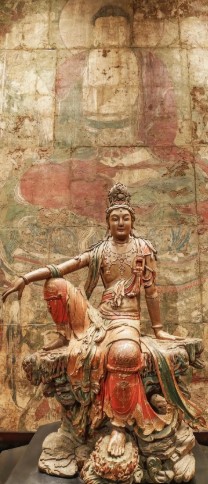 辽代彩绘木雕水月观音像