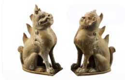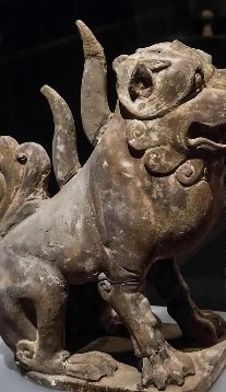 人面兽身型:头部低俯,胡人面容(浓眉深目),兽身饰鱼鳞纹或卷云纹彩绘,四肢蹲踞或直立,高约30-63厘米12。兽面型:阔口吐舌,脊背带凸起(象征羽翼),颈部悬铃铛,材质多为釉陶或灰陶。以红、黑、白彩为主,部分贴金,易剥落