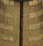 这件仪式用锁子锦甲胄由上衣,下裳以及头盔(胄)组成。上衣包括左右护肩, 左右护腋,前遮缝和左遮缝。上衣下裳皆为黄底人字纹锦面,褐色绒缘边,通身布满规则的铜镀金钉。袖口及护肩接衣处饰鎏金龙纹铜板。上衣前胸部原来悬有一面护心镜。