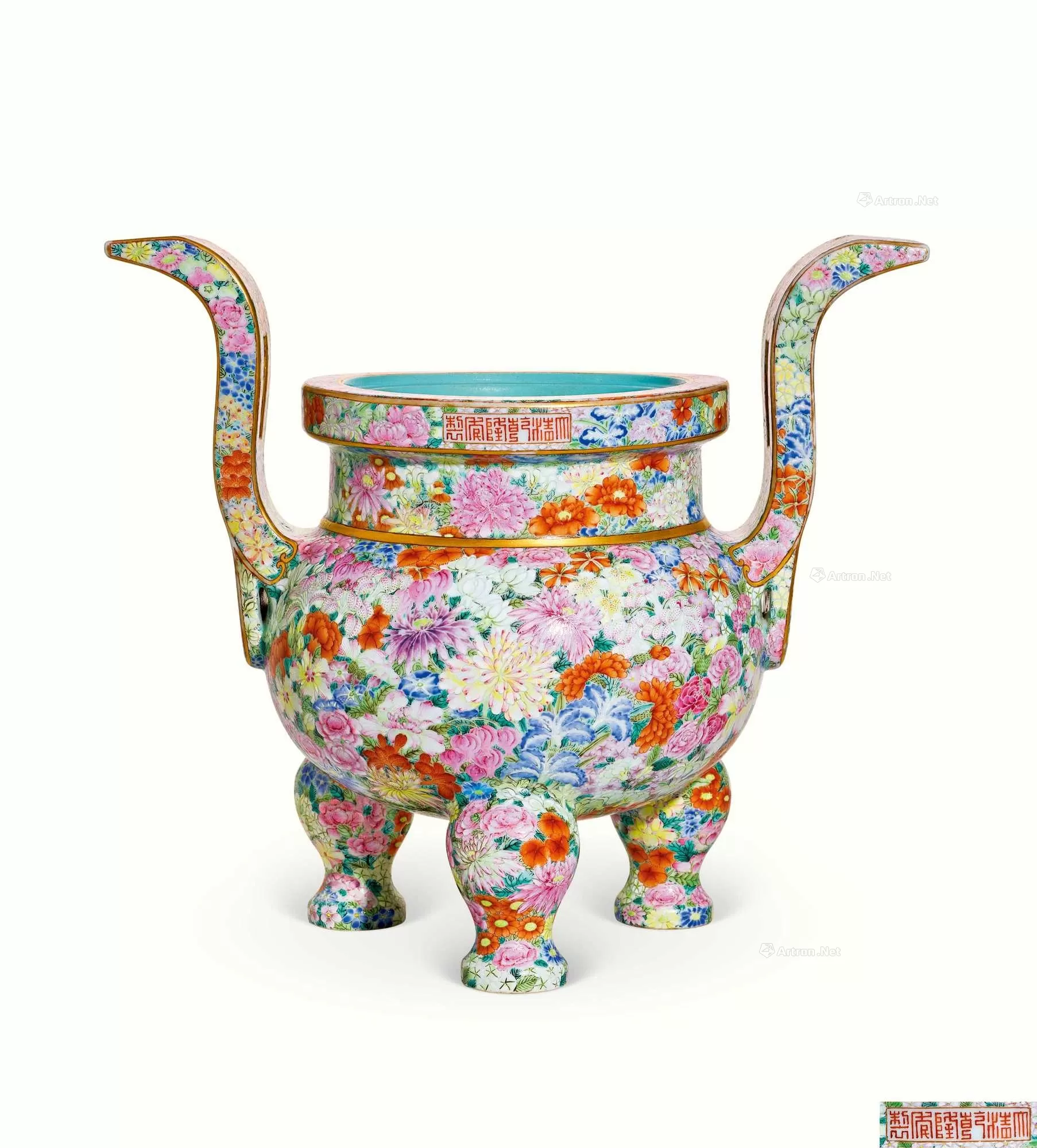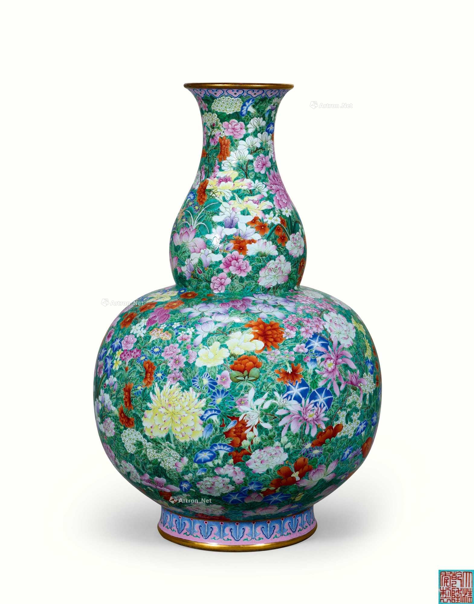 乾隆时期是清代官窑瓷器发展的鼎盛阶段,宫廷对瓷器装饰追求“图必有意,意必吉祥”,“百花不落地”纹样象征“万花献瑞、盛世升平”,常用于皇家庆典或陈设。此器工艺复杂,需先烧制素胎,再以玻璃白打底绘制彩料,经低温二次烧成,体现乾隆朝制瓷业在原料配方、施釉工艺、彩绘技法上的极高水准。作为清宫旧藏,其流传反映了近代中国文物流失的历史背景,也是研究中西文化交流与文物收藏史的重要实物