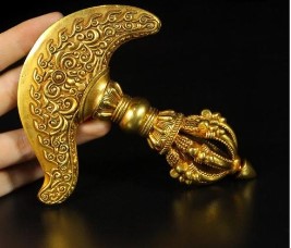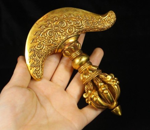工艺象征:鎏金技术(“火镀金”)在唐代达到巅峰,铜斧通体鎏金既彰显武力,又体现贵族审美,可能与仪仗或赏赐相关