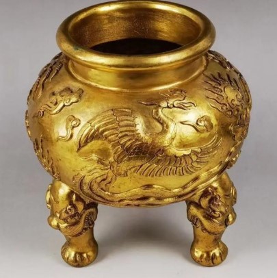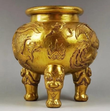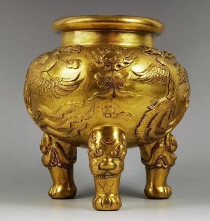 炉体结构:多由炉盖、炉身、炉足组成,如鎏金卧龟莲花纹香炉通高29.5厘米,盖顶为莲蕾形,五足饰朵带纹,炉身錾刻卧龟莲花与流云纹。