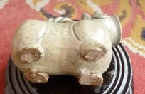 造型:多呈伏虎状,提梁作弓形或虎尾形(如绍兴虎子长26.7厘米,贴塑虎头与飞翼)。纹饰:东晋时期简化,仅刻划线条(如腹部网格纹),西晋则常见浮雕。材质:青瓷胎体灰白,施釉不及底,露胎处呈火石红,釉面开片细碎