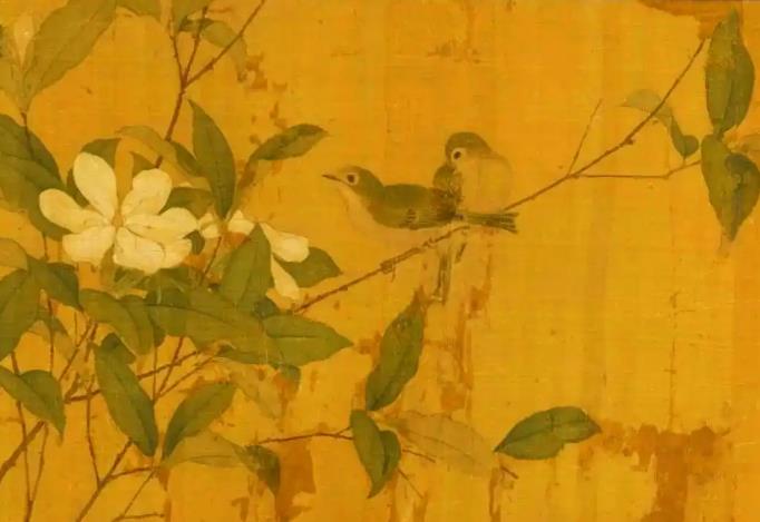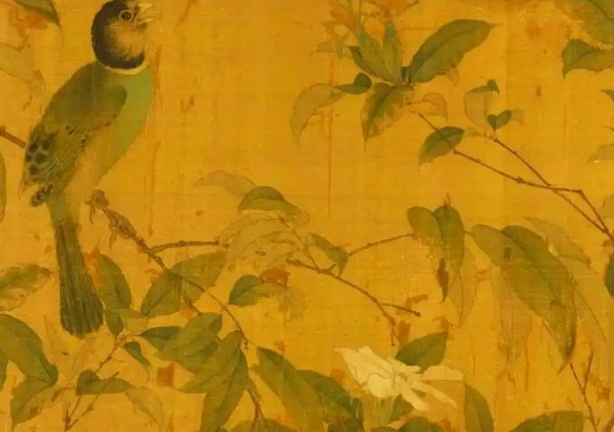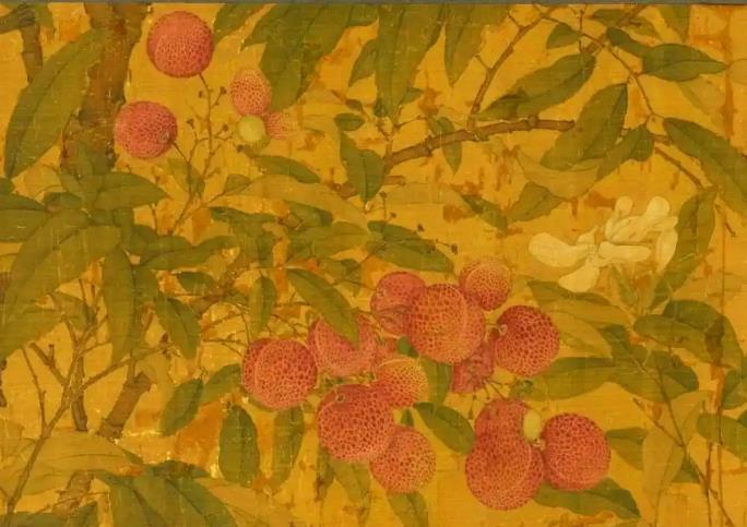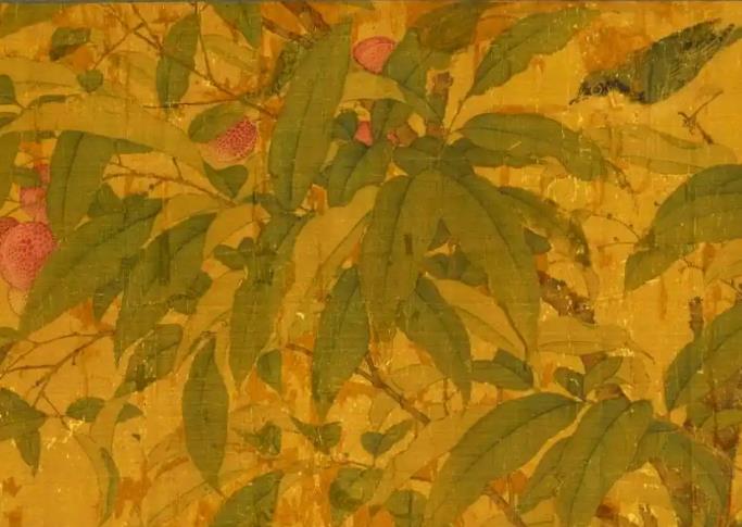 此卷诞生于北宋宣和年间(1119-1125年),是宋徽宗艺术革新思想的典型实践。画面核心元素暗藏宫廷秘辛:据《老学庵笔记》记载,宣和殿前曾移植福建陈紫荔枝树,结实后徽宗亲摘赐予大臣王安中,并赋诗记事。画中荔枝树即为此事件的图像化记录,兼具祥瑞寓意与政治宣导功能。其艺术价值更在于打破传统花鸟构图:荔枝枝干斜向贯穿全卷,禽鸟动态穿插形成“S”形视觉流线,将生态写生升华为诗性空间。创作时期正值徽宗推行“画学”改革,强调“格物穷理”,该卷对植物形态的精准刻画(如荔枝鳞斑、栀子花瓣层叠)与禽鸟解剖结构的严谨呈现,成为“宣和体”花鸟的典范之作.
