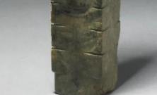 大英博物馆藏良渚文化玉琮(编号1936,1016.1)为典型方柱形黄玉礼器,高49.5厘米,重6.2公斤,属新石器时代晚期(约公元前3300-2300年)。琮体分17节,每节以减地法凸雕简化神人兽面纹,顶部射口呈外方内圆结构,通体布满天然云母闪光点。其纹饰系统尤为特殊:横向阴刻线构成"神徽"抽象图案,纵向贯通四角的直槽内保留朱砂痕迹,证实其曾作为祭祀通天的法器使用。该琮玉质经检测为透闪石软玉,采自太湖流域天目山矿脉,表面可见原始砣具留下的0.3毫米等距旋痕,是迄今海外所藏节数最多、工艺最精的良渚玉琮代表作。