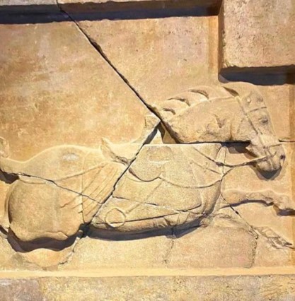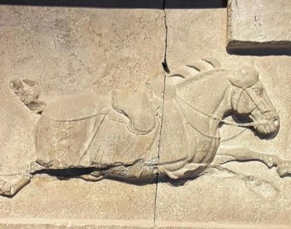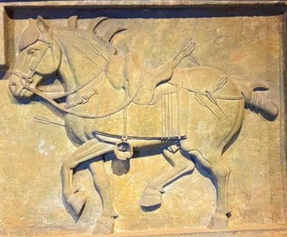 唐昭陵六骏石刻飒露紫(带丘行恭拔箭浮雕)