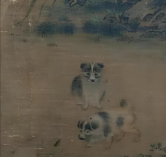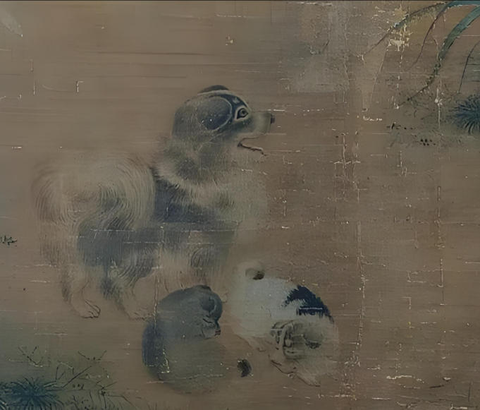 《萱草戏狗图》作传统上被归为南宋画家毛益(活跃于12世纪)名下,通过描绘庭院中嬉戏的宠物犬群像,生动再现了宋代都市社会豢养宠物的生活风尚。作为现存罕见的宋代犬题材院画精品,其不仅具有极高的艺术价值,更以其细腻真实的场景刻画,成为研究12-13世纪中国宠物文化、社会生活及审美趣味的重要视觉文献。