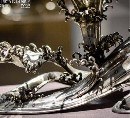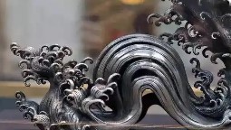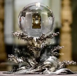 底座:波浪形银质托架源自日本,錾刻浮世绘风格海浪纹,每片浪花水滴立体分明,与水晶球形成"惊涛托月"的意境
