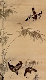 构图:绢本设色,主体鹁鸽(珠颈斑鸠)或栖或飞于竹石间,竹枝以没骨法渲染,石纹融入书法笔意,鸟羽层次分明如摄影般精确1214。