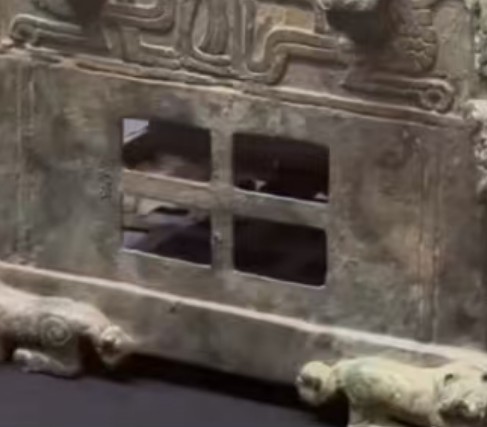 此炉将功能性与象征性完美融合,螭(龙虎混合神兽)代表天地能量的流转,八虎托举象征大地支撑,下层燃炭既用于温食,亦隐喻“地火供养天神”的春秋祭祀观,完整人形守卫取代刖人,反映春秋时期“仁礼”思想对残酷刑祭的消解。