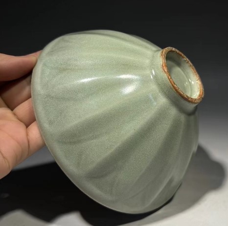 典型器物高7-18厘米,灰白胎施青釉,敞口弧腹配小圈足。外壁以浮雕技法刻划仰莲瓣纹,瓣脊凸起如菊瓣,釉色分粉青(釉层厚如凝脂)与梅子青(翠绿透亮)两类,口沿与圈足露胎处呈火石红色。如丽水藏一级文物碗外壁莲瓣从口沿延伸至足部,刻痕深峻,釉面玻璃质感强烈