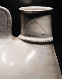 典型器物高20-40厘米,胎体灰白施化妆土,釉色青白或纯白,分单孔式与提梁式两类。如耶律羽之墓出土白釉提梁壶(高30.4厘米)呈扁圆腹、半圆形提梁,底部贴塑联珠纹,釉面冰裂纹自然开片;而早期单孔式壶则顶部设鸡冠状穿孔,器身保留仿皮囊缝合的凸棱纹与绳纹装饰