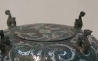 4. 工艺细节:鸟钮与盖面采用分铸法焊接,接缝隐蔽,盖缘有子口(用于与器身扣合),部分子口残损,表面有均匀铜绿锈,包浆厚重。