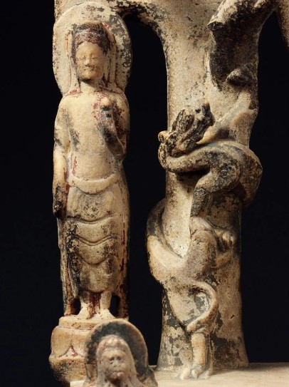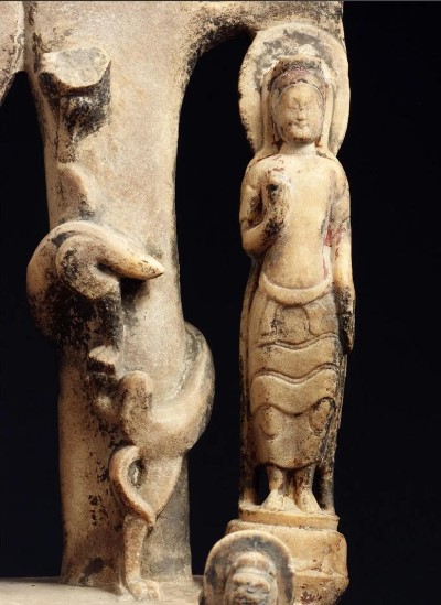 1920年代,日本山中商会将河北响堂山石窟盗凿的佛立像残躯转售美国古董商卢芹斋,后以"佛教艺术研究"名义入藏宾大博物馆,其具体盗凿位置经学者比对确认为南响堂般若洞中心柱