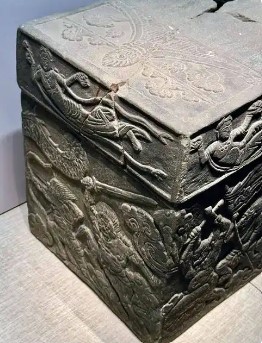 辽代(916-1125年)崇奉密宗,舍利函多用于安葬佛舍利或高僧遗骨。乾统五年(1105年)石函反映辽晚期佛教艺术融合契丹族特色,涅槃图构图承袭犍陀罗传统,但力士形象已本土化,与同期西夏、宋地涅槃图差异显著