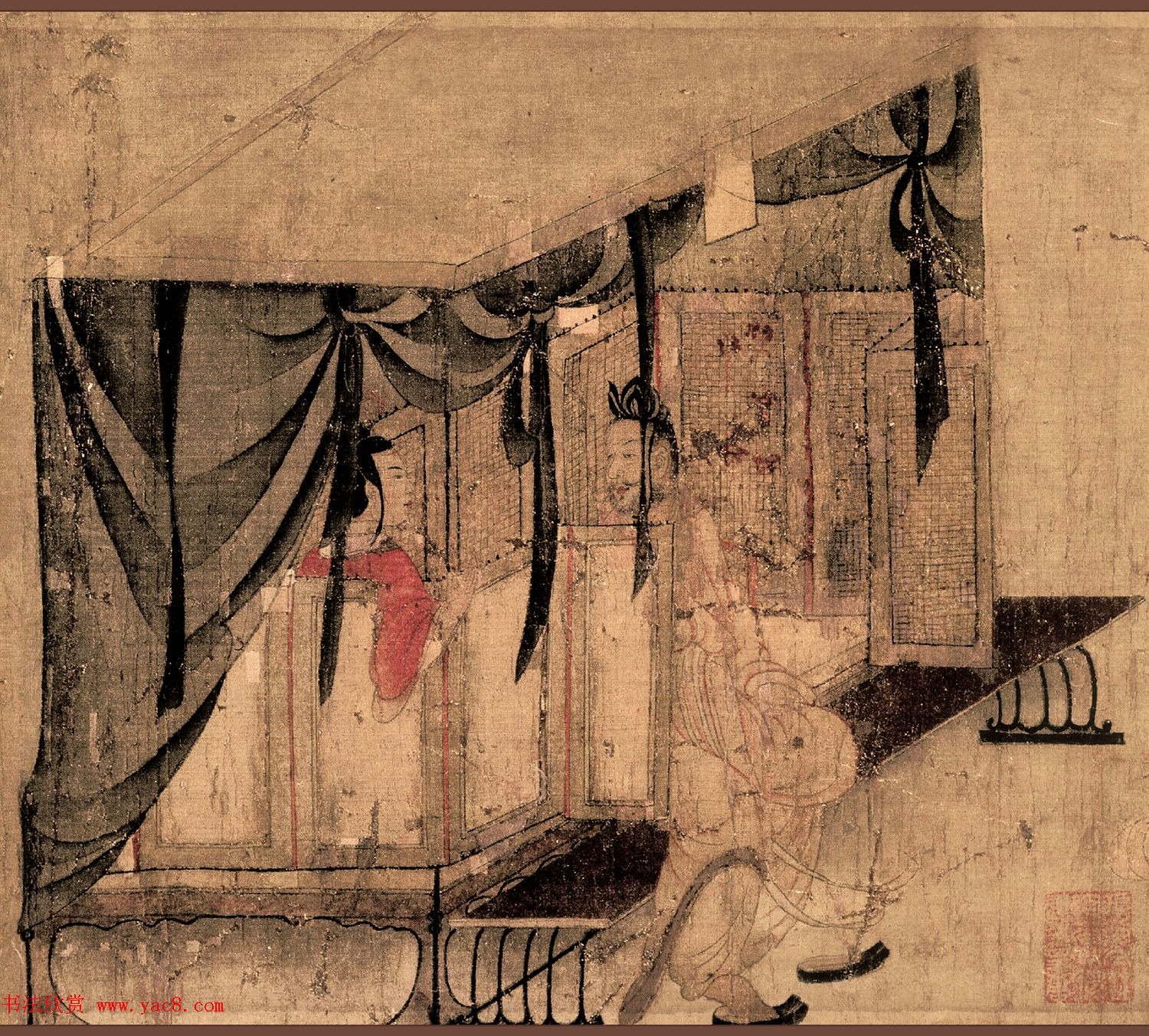 东晋顾恺之据张华《女史箴》作绘画,宣扬宫廷女性德行规范。唐代文化昌盛,摹古成风,匠人以高超技艺摹写此作,保留魏晋绘画精髓。后经朝代更迭、收藏流转,近代因列强侵华遭劫掠外流,见证中外文化交流与文物命运跌宕 。