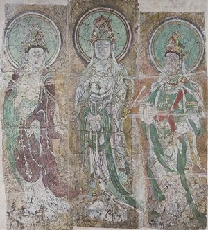 河北清凉寺三菩萨壁画为寺观宗教艺术瑰宝,以矿物颜料绘于墙体,菩萨造型庄严慈悲,衣饰线条流畅,色彩历经千年仍部分鲜艳。融合宋代(或对应朝代 )宗教绘画风格与民间工艺,是研究中国古代佛教艺术、壁画技法、宗教信仰的关键实物,承载地域文化与历史记忆 。