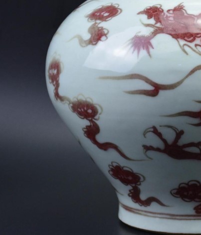 功能与用途:釉里红大罐作为盛器或陈设器,主要用于宫廷或贵族家庭。其精美的造型和纹饰,体现了元代匠人的高超技艺和审美追求。同时,釉里红因烧制难度高、成品率低,成为元代陶瓷中的稀世珍品。