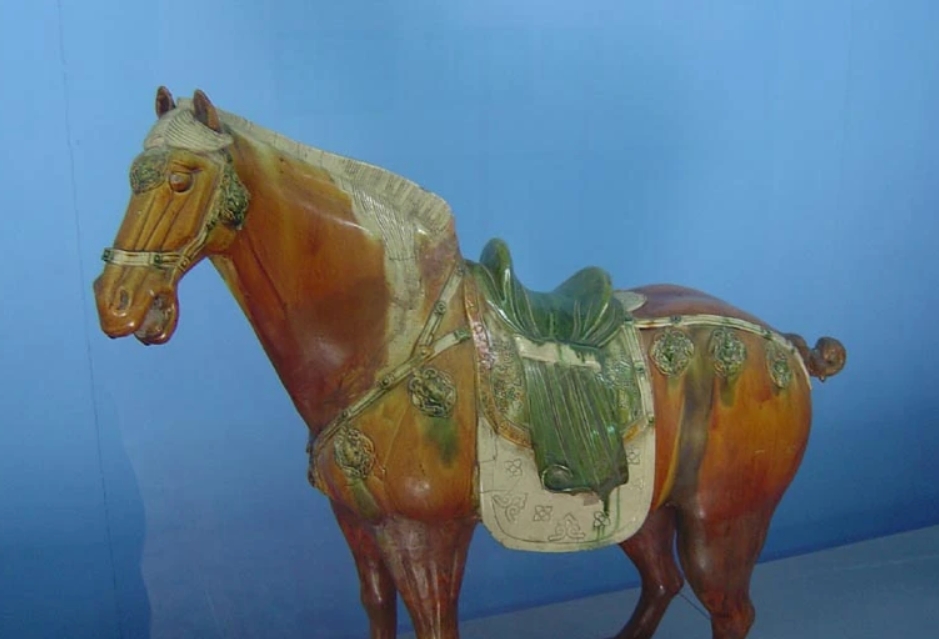 马在唐朝之所以受到重视,与李唐王朝本身具有游牧民族血统有关。李世民将骑马狩猎视为大丈夫三大乐事之一,让阎立本画出昭陵(唐太宗李世民陵墓)六骏样本,命工匠雕刻成石质浮雕,永远陪伴其左右。唐玄宗李隆基驯养舞马在自己生日的千秋节上应节踢踏,翩翩起舞。诗人李白吟出“五花马,千金裘,呼儿将出换美酒,与尔同销万古愁”之佳句。马是唐人生活不可或缺的组成部分,唐代墓葬中出土三彩马众多,反映出唐人对马的喜爱。