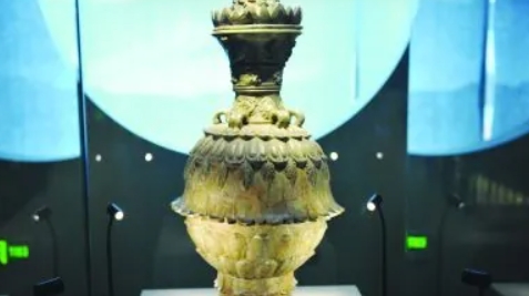 北朝青瓷莲花尊,北朝时期作品,器高63厘米,口径19.4厘米,现藏于中国国家博物馆。莲花尊在南北朝时期烧制较多,器形高大宏伟。此装饰有多层仰莲纹和团花装饰并采用堆塑、镶贴、雕刻等多种装饰技法。莲花尊的成功烧制,表明南北朝时制瓷工艺已有相当高的水平。