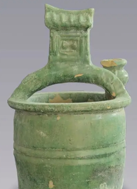 汉代陶井多呈方形或圆形,井栏饰绳纹、几何纹,部分带辘轳、水桶等附件。釉陶井通体施绿釉,井台常塑有打水人物或家畜,生动再现汉代农耕生活场景,是研究当时水利技术的重要实物。