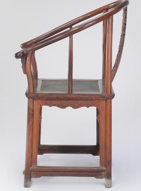 1. 形制:圈椅靠背、扶手连成弧形,座面为方形,下有壸门券口;
