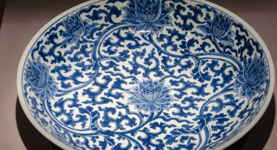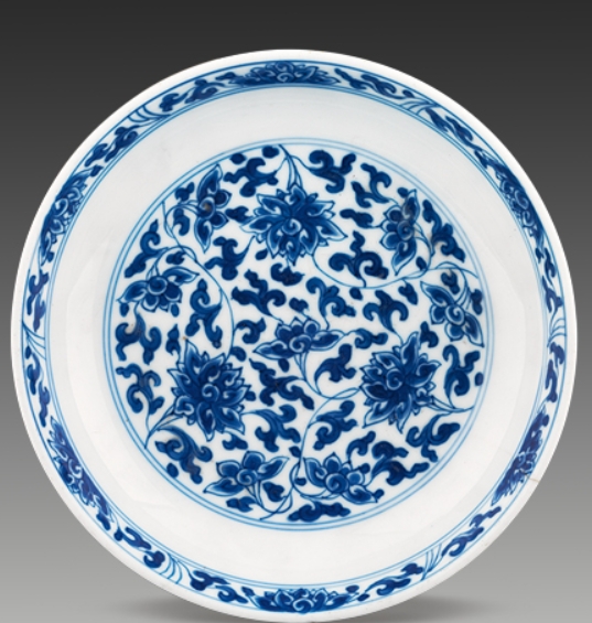 元代景德镇创烧成熟青花瓷,融合伊斯兰审美与中国传统纹样。此类缠枝莲纹盘多经海上丝路销往中东,伊朗、土耳其王室旧藏甚丰,见证了中外文化交流与元代制瓷巅峰成就。