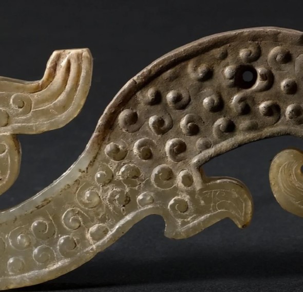 3. 细节:边缘打磨光滑,纹饰采用阴刻与浅浮雕结合,线条流畅如 “游丝描”,龙身斑点似发芽的种子(谷纹),象征生命与繁衍;