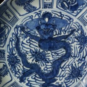 明万历青花徽章纹克拉克瓷碗