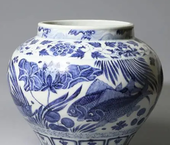 元代青花鱼藻纹罐