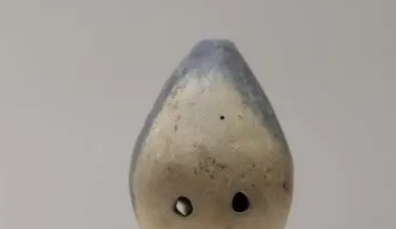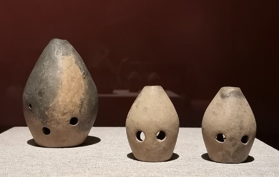 埙体呈水滴形,顶部设吹孔,腹部有三音孔(呈三角形排列)。表面拍印细绳纹,颈部刻有两个未释读的陶文符号。经声学检测可奏出四声音阶(宫-商-角-徵),音准误差小于30音分。胎体含微量云母,烧成温度约900℃。
