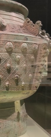 造型:方格乳钉纹盖罐,盖与罐身以方格划分,乳钉纹点缀其间,整体造型规整,线条流畅。