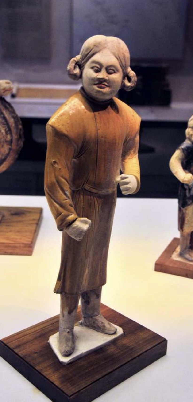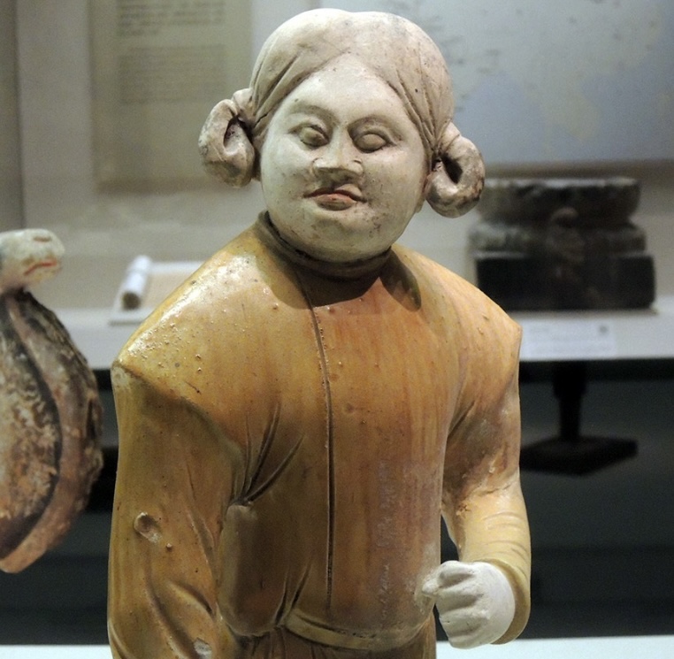 这件文物出土于唐开元年间西安的鲜于廉墓,现藏于国博。鲜于廉是唐右领军卫大将军,葬于开元十一年(723年)。他的墓中不仅出土了这件黄釉陶胡人俑,还有大量精美的唐三彩俑,其中第三批禁止出国文物的“唐代陶骆驼载乐舞三彩俑”也是出自于此。
