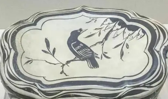 此枕呈银锭形,长28厘米,高12厘米。枕面白地黑书行草七言诗:"清风细雨湿梅花,骤马先过碧玉家。"笔势酣畅,釉下铁绘技法纯熟。侧面剔刻缠枝牡丹纹,纹饰处施化妆土形成"白地黑花"效果。胎骨灰白致密,底部露胎处见"张家造"窑戳。经X光检测,胎土含磁县本地特有的铁矿微粒,与观台窑址出土标本成分一致。
