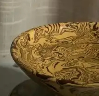 唐代搅胎六花形盘的外观呈现出六瓣花的形状,口沿呈六曲花瓣状,线条流畅自然,造型新颖别致。这种独特的设计让盘子从普通圆形盘脱颖而出,极具观赏性。整体制作规整,盘壁斜直,盘底较为平整,体现出唐代高超的制瓷工艺水平。在细节上,口沿边缘打磨光滑,触感舒适,同时也展现出器物的精致感。