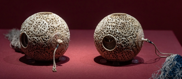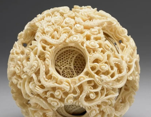 清代象牙透雕套球